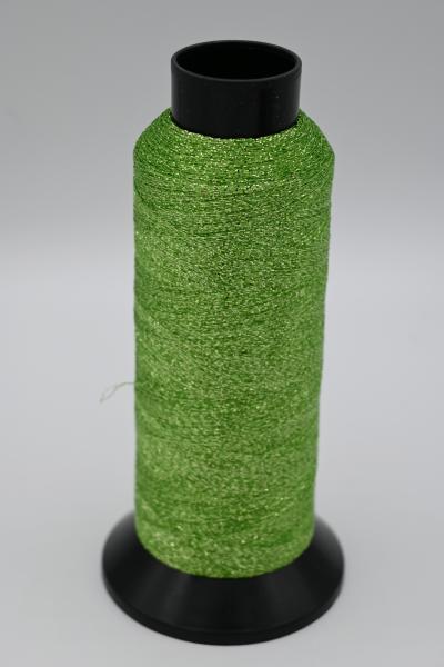 Hier erhaltet ihr 1 Plastik-Spule mit 3000 m Glitzer in hellgrün.