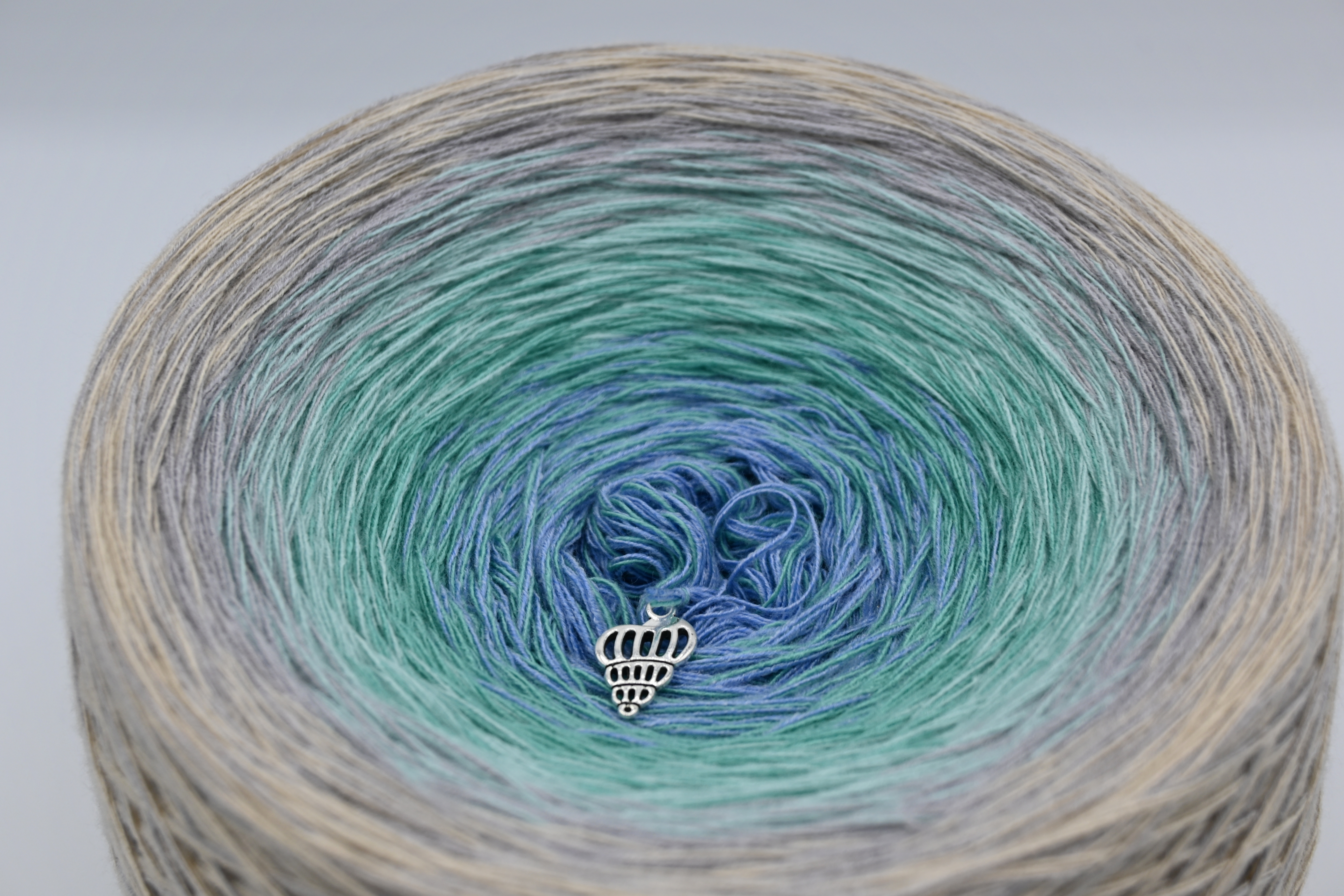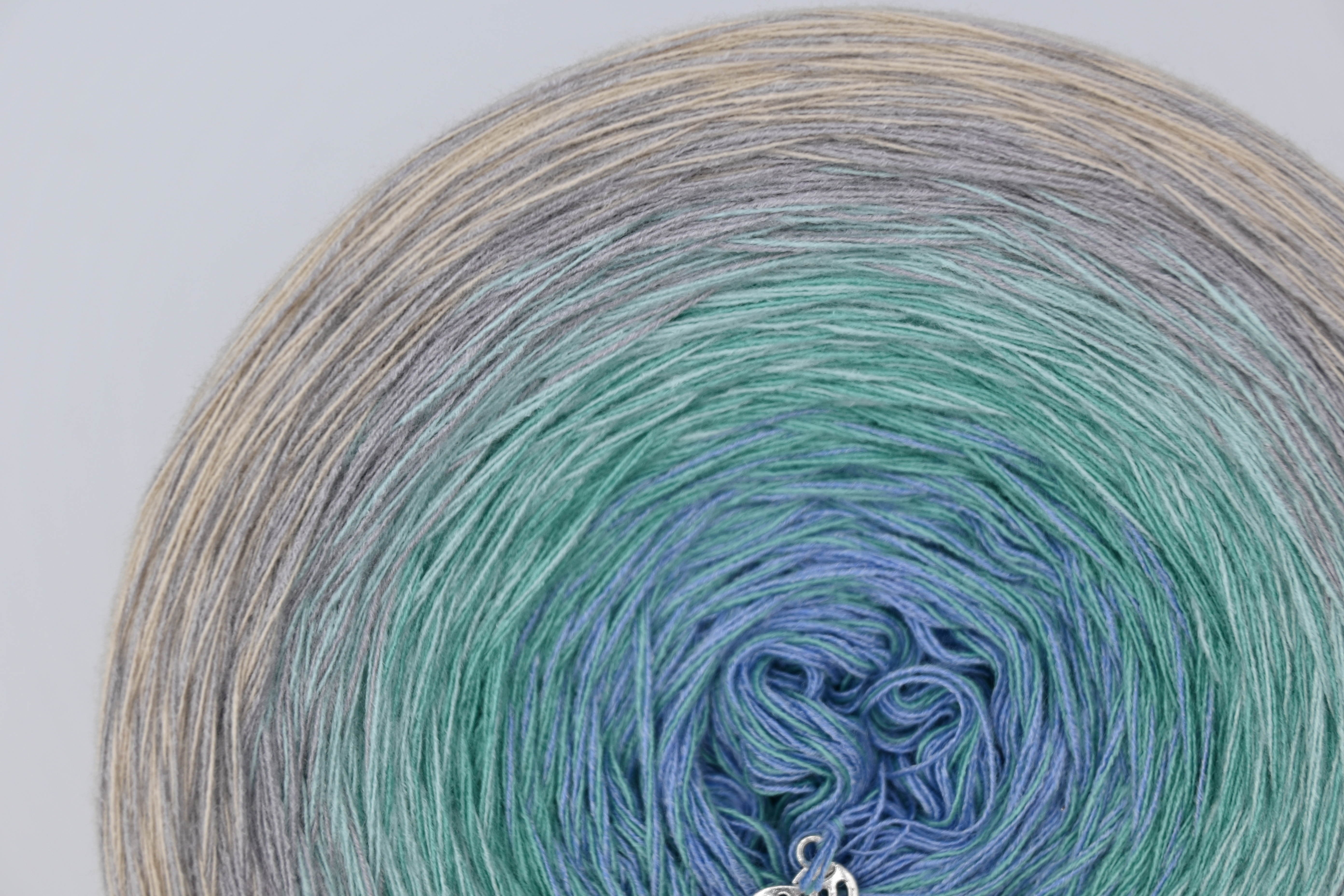 Es wechselt immer 1 Faden die Farbe. Bei diesem Farbübergang werden die Fäden miteinander verknotet. Die Knoten sind so klein, dass du sie problemlos mit einhäkeln/einstricken kannst.