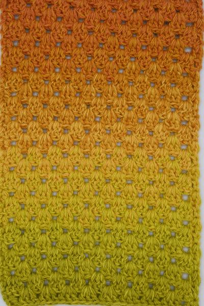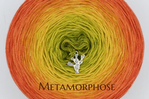 Es wechselt immer 1 Faden die Farbe. Bei diesem Farbübergang werden die Fäden miteinander verknotet. Die Knoten sind so klein, dass du sie problemlos mit einhäkeln/einstricken kannst.