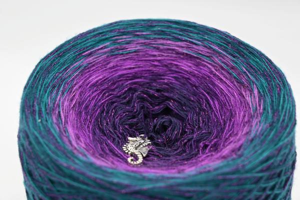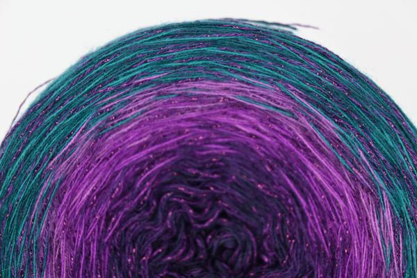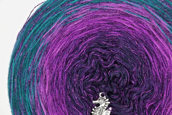 Es wechselt immer 1 Faden die Farbe. Bei diesem Farbübergang werden die Fäden miteinander verknotet. Die Knoten sind so klein, dass du sie problemlos mit einhäkeln/einstricken kannst.