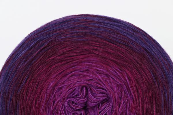 Es wechselt immer 1 Faden die Farbe. Bei diesem Farbübergang werden die Fäden miteinander verknotet. Die Knoten sind so klein, dass du sie problemlos mit einhäkeln/einstricken kannst.