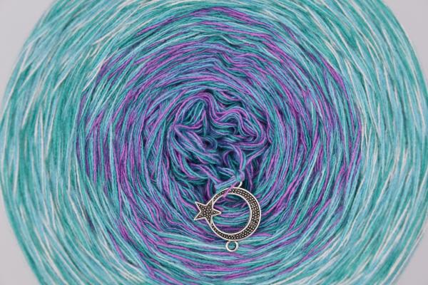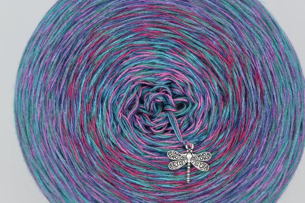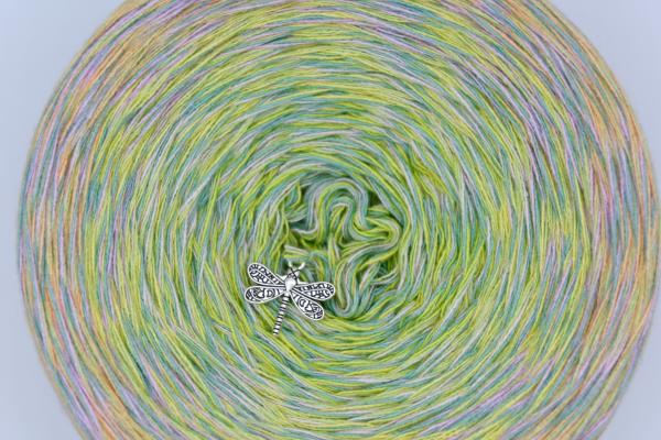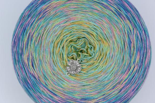 Es wechselt immer 1 Faden die Farbe. Bei diesem Farbübergang werden die Fäden miteinander verknotet. Die Knoten sind so klein, dass du sie problemlos mit einhäkeln/einstricken kannst.