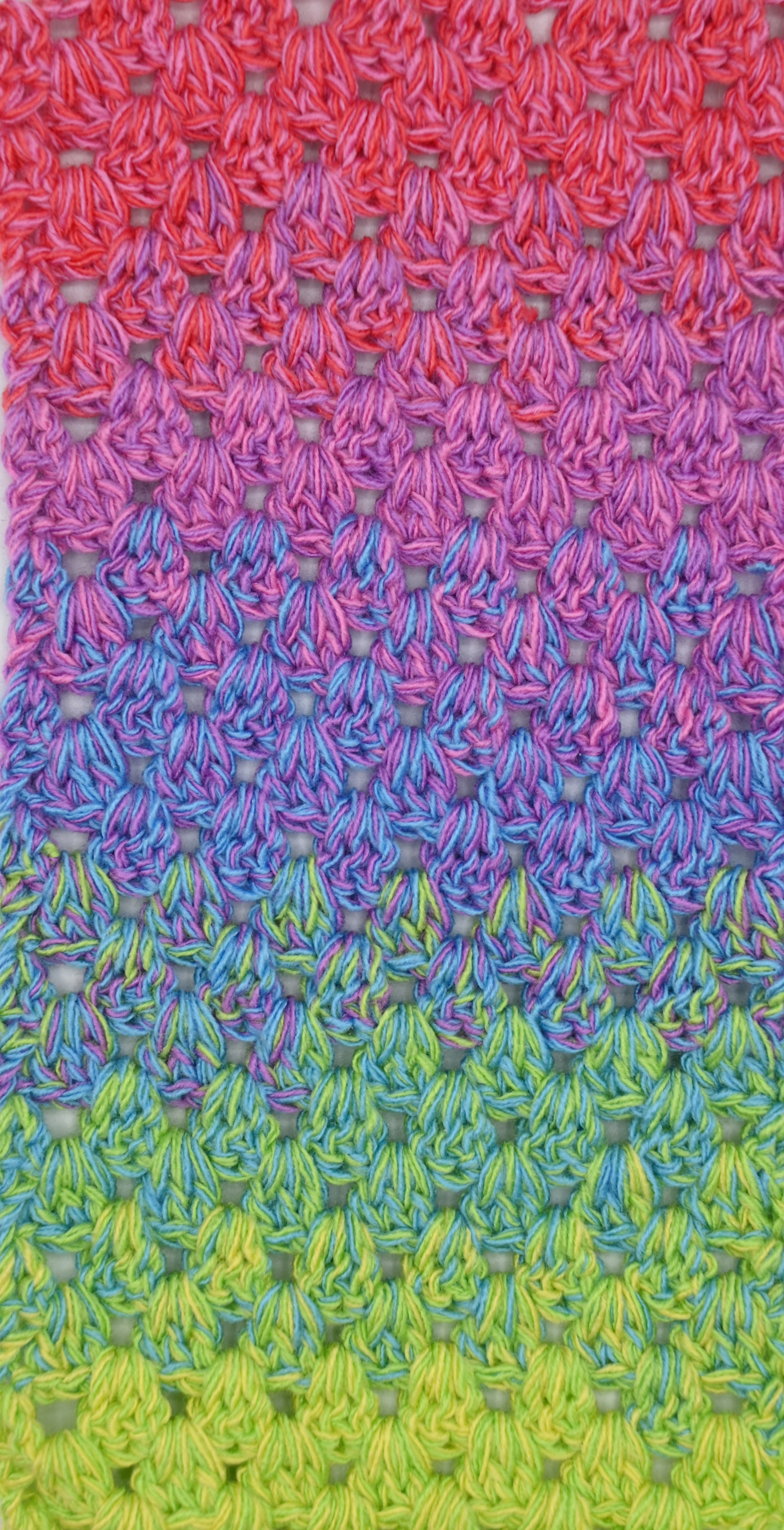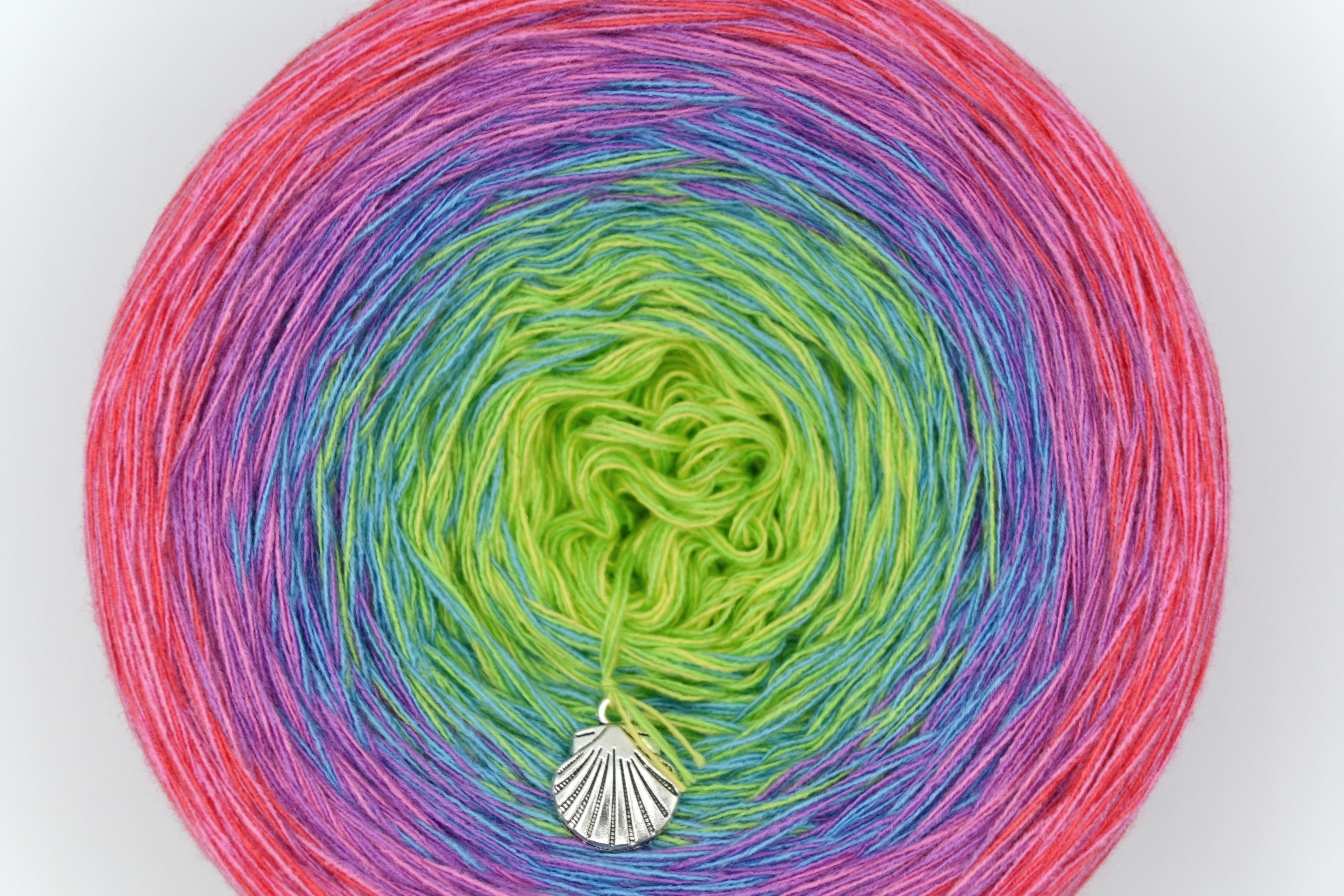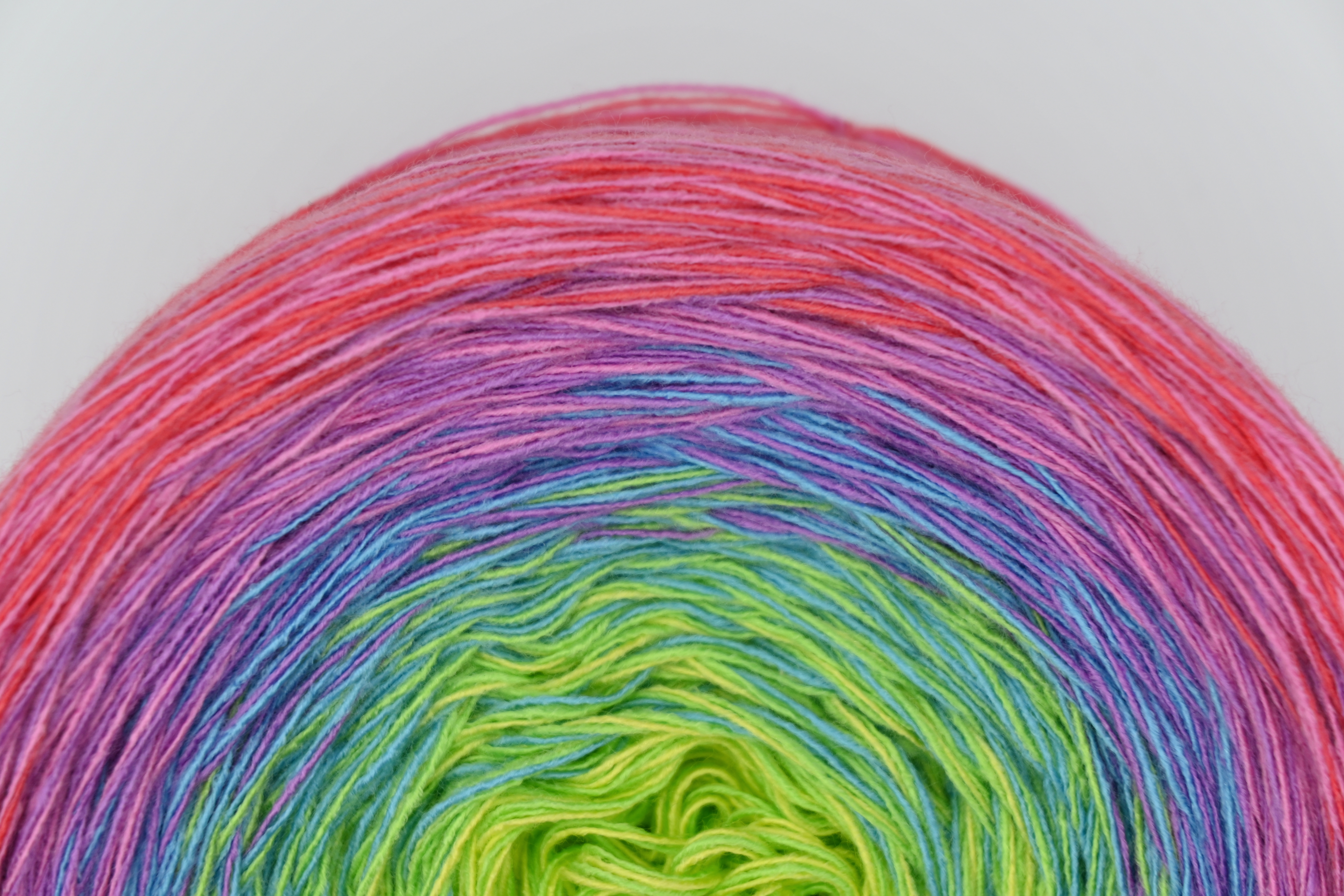 Es wechselt immer 1 Faden die Farbe. Bei diesem Farbübergang werden die Fäden miteinander verknotet. Die Knoten sind so klein, dass du sie problemlos mit einhäkeln/einstricken kannst.