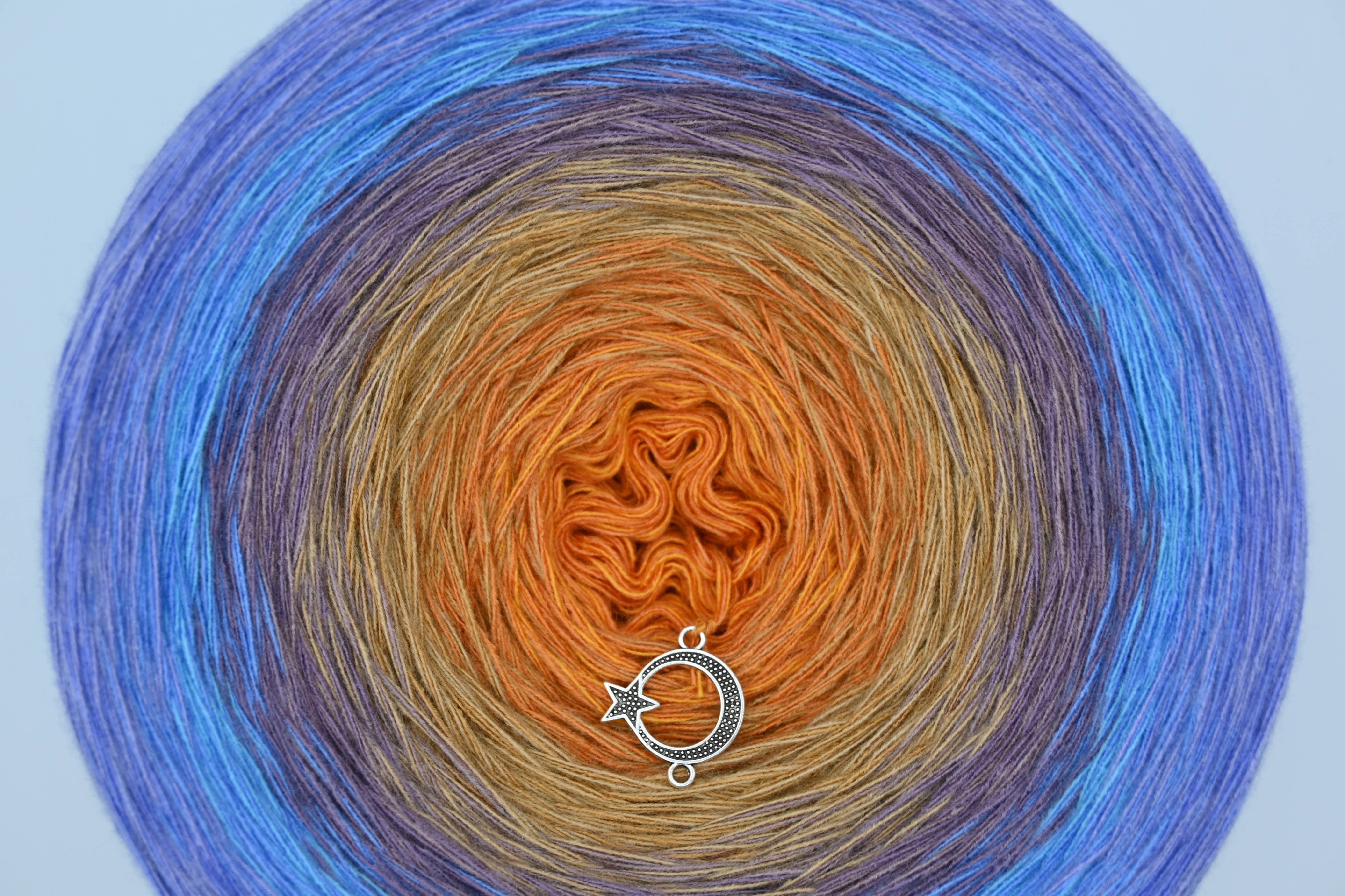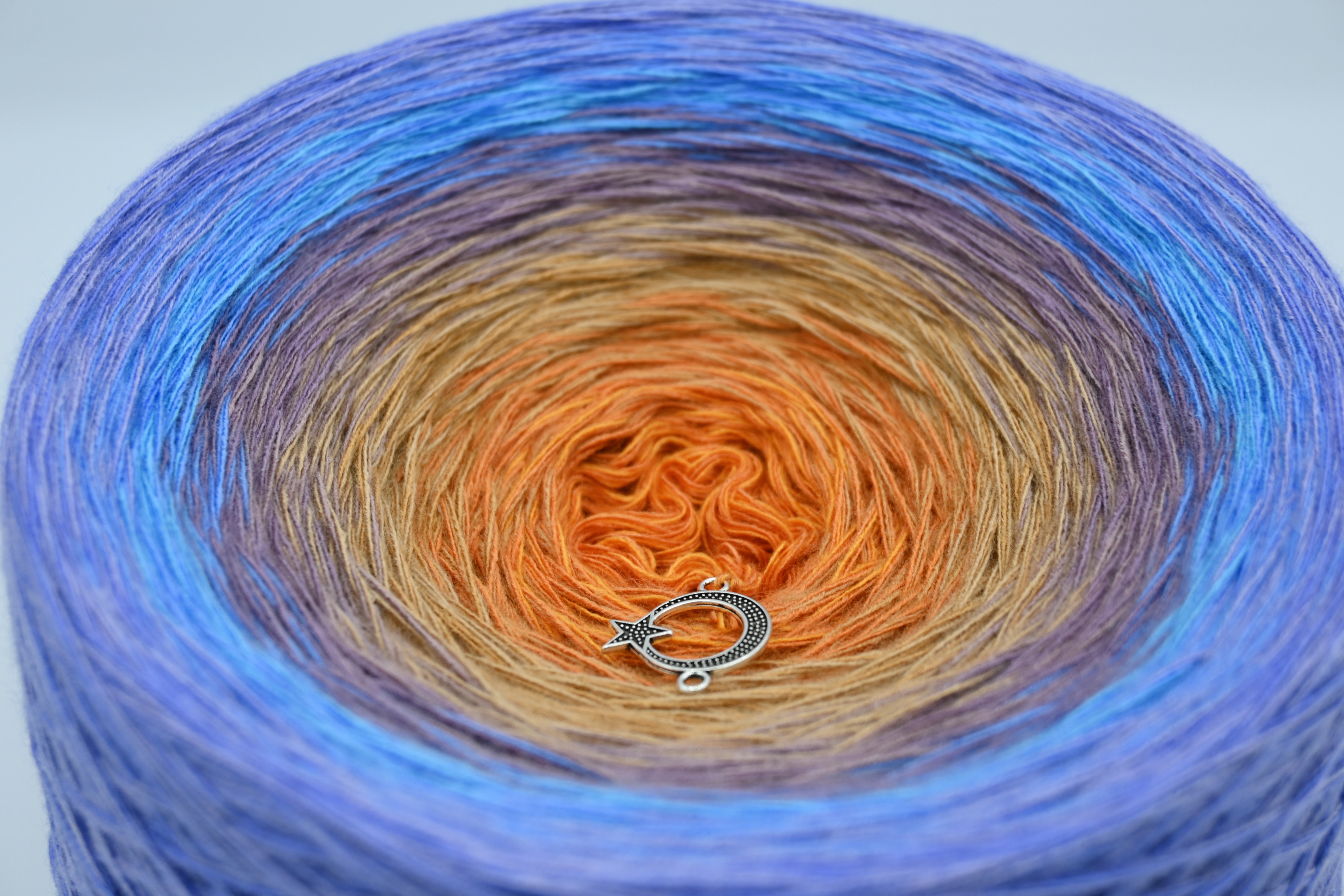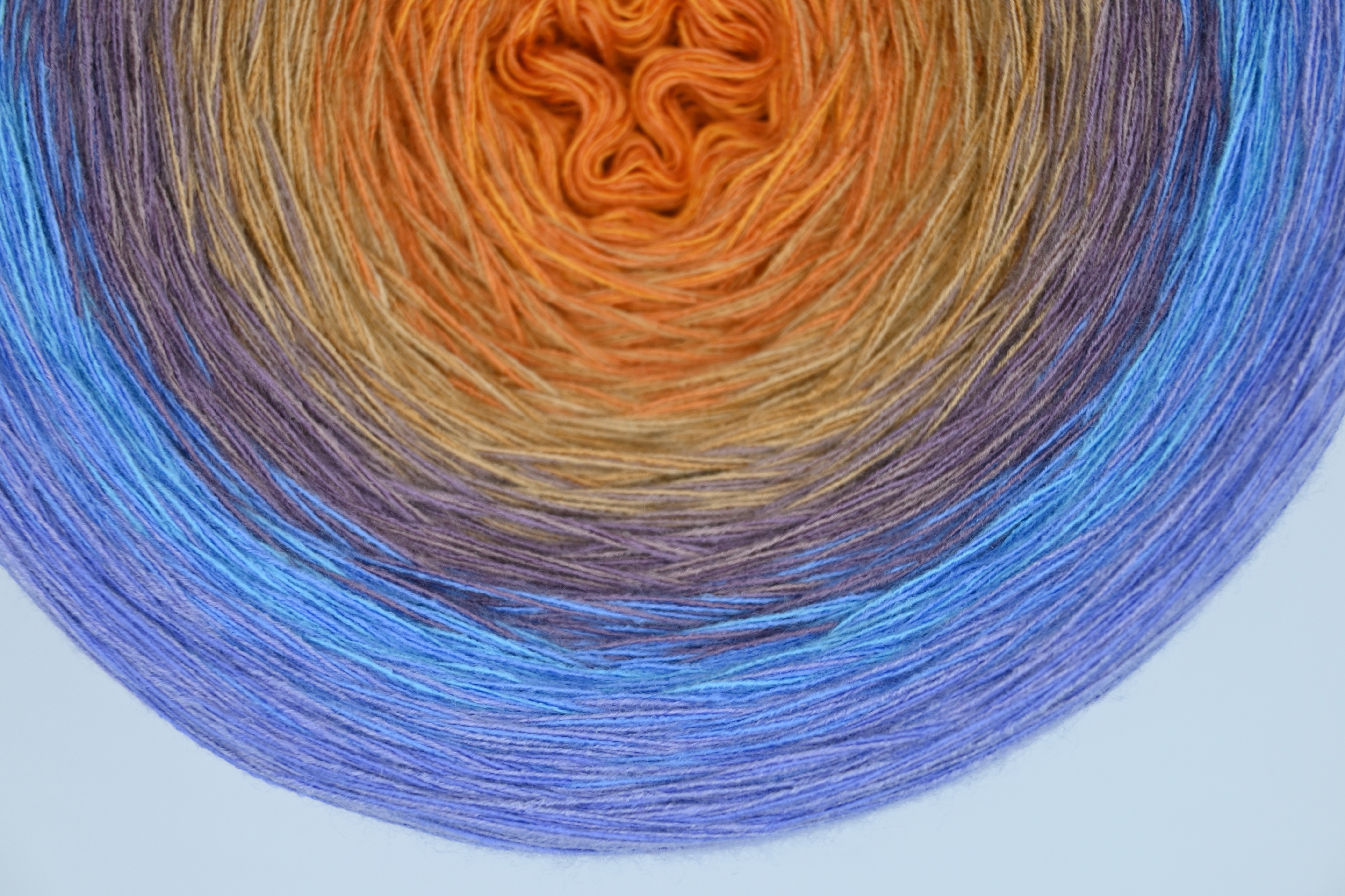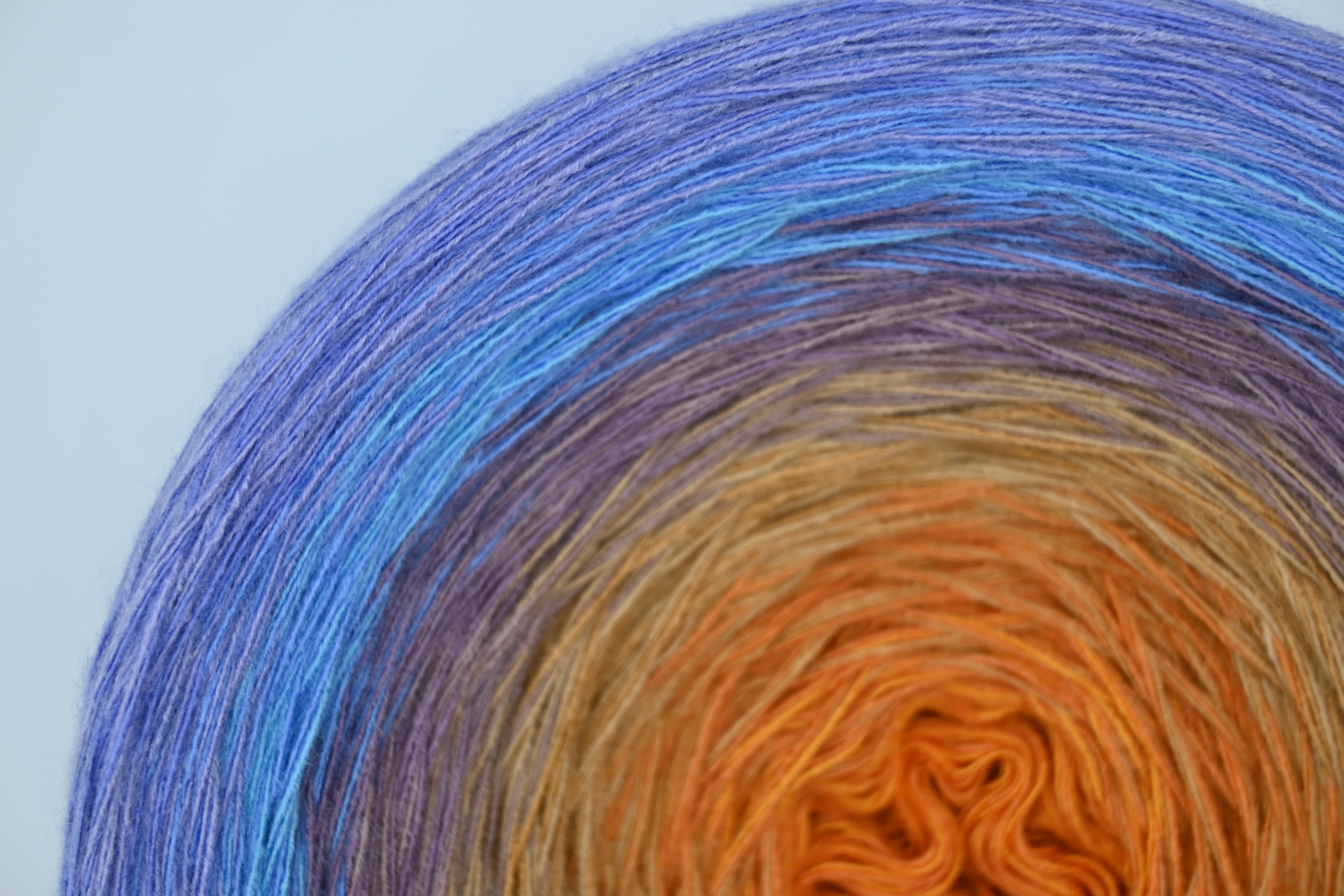 Es wechselt immer 1 Faden die Farbe. Bei diesem Farbübergang werden die Fäden miteinander verknotet. Die Knoten sind so klein, dass du sie problemlos mit einhäkeln/einstricken kannst.