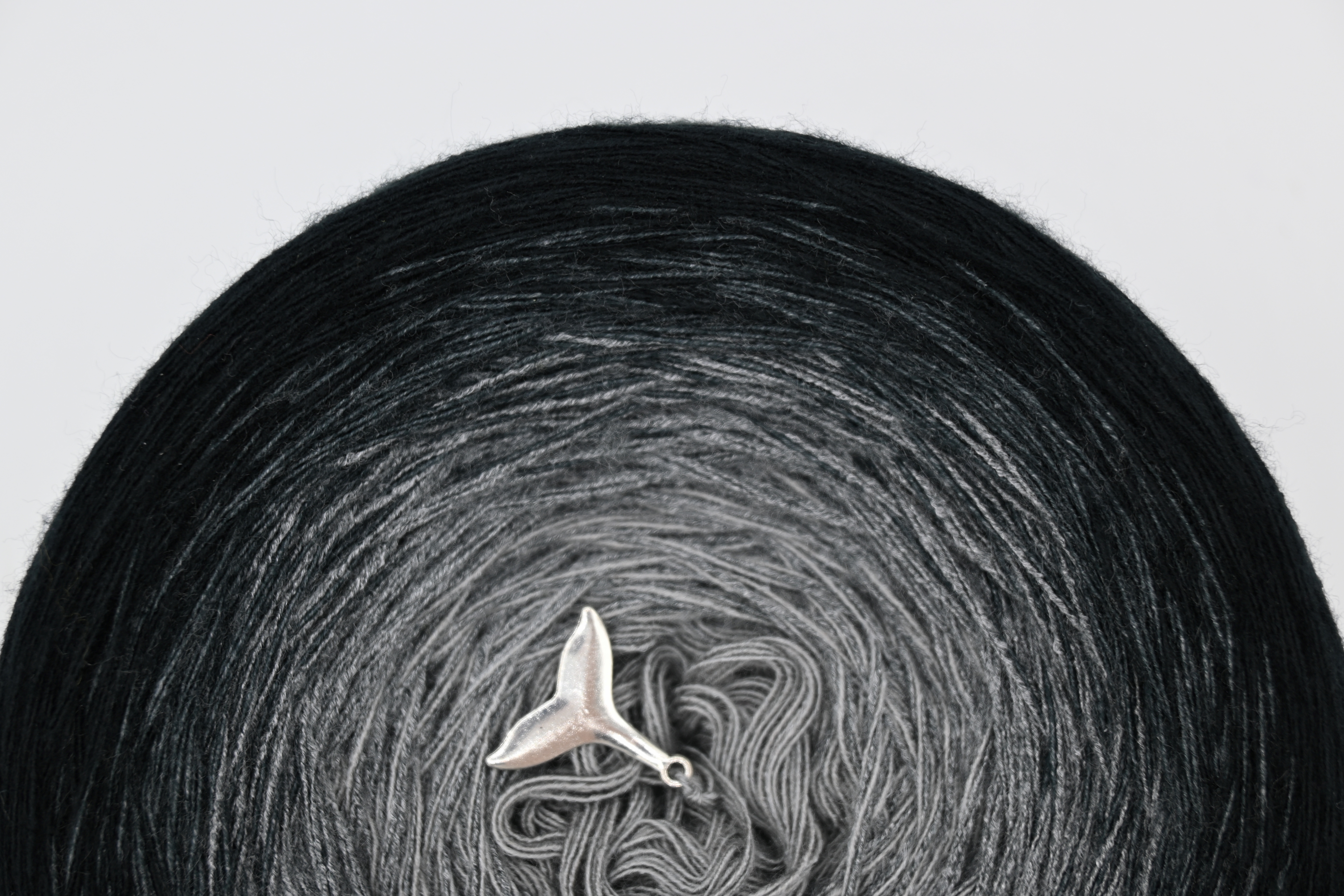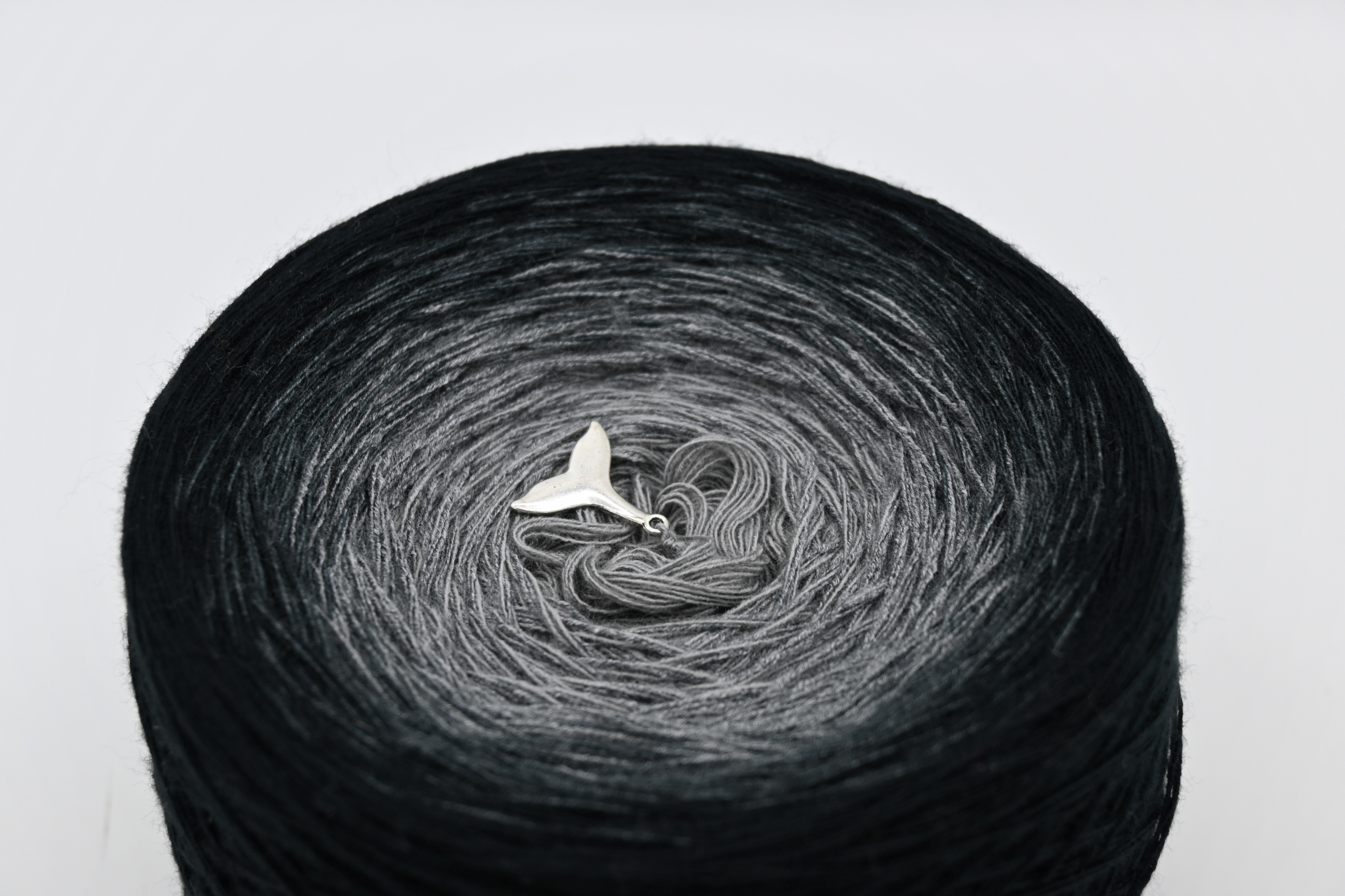 Es wechselt immer 1 Faden die Farbe. Bei diesem Farbübergang werden die Fäden miteinander verknotet. Die Knoten sind so klein, dass du sie problemlos mit einhäkeln/einstricken kannst.