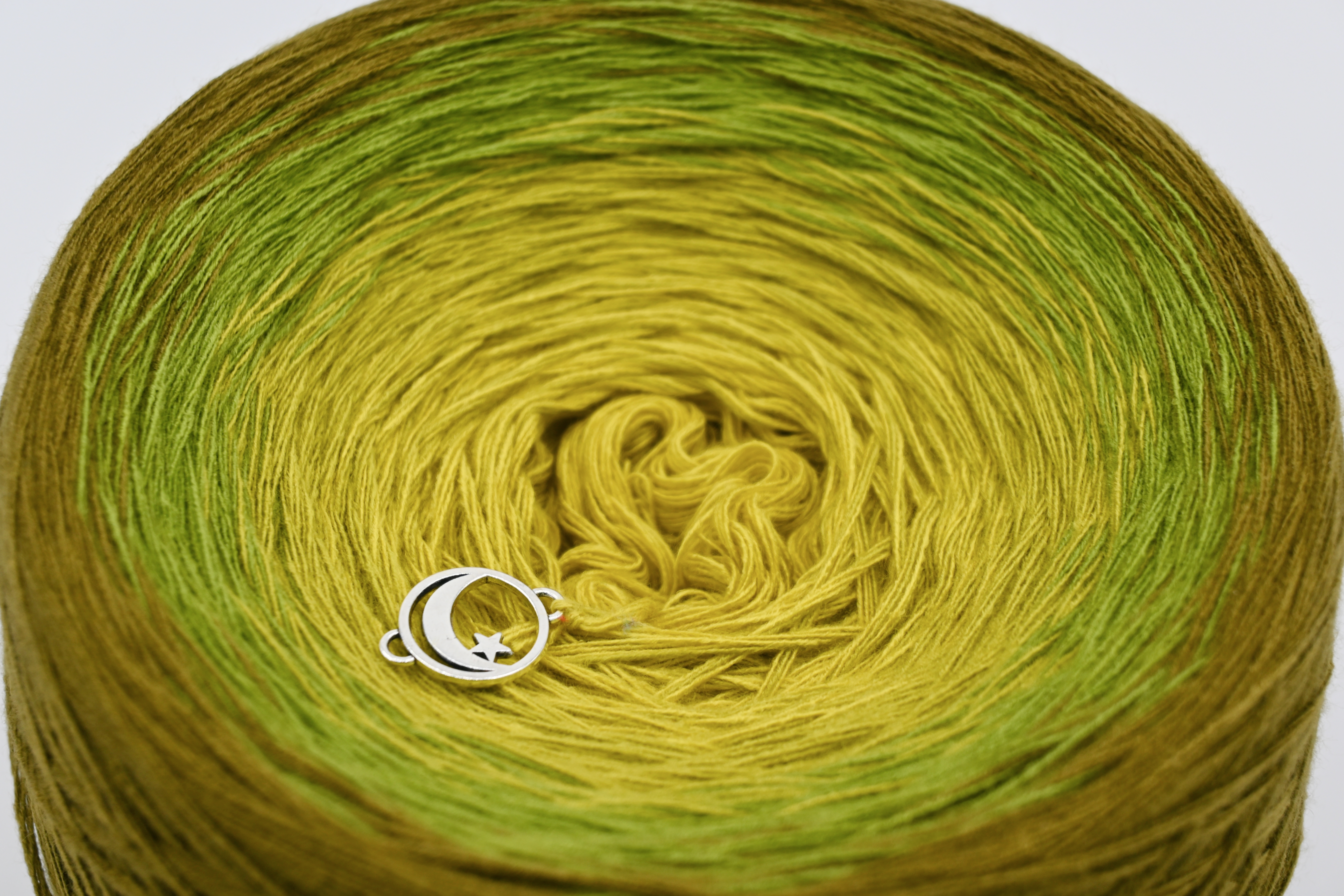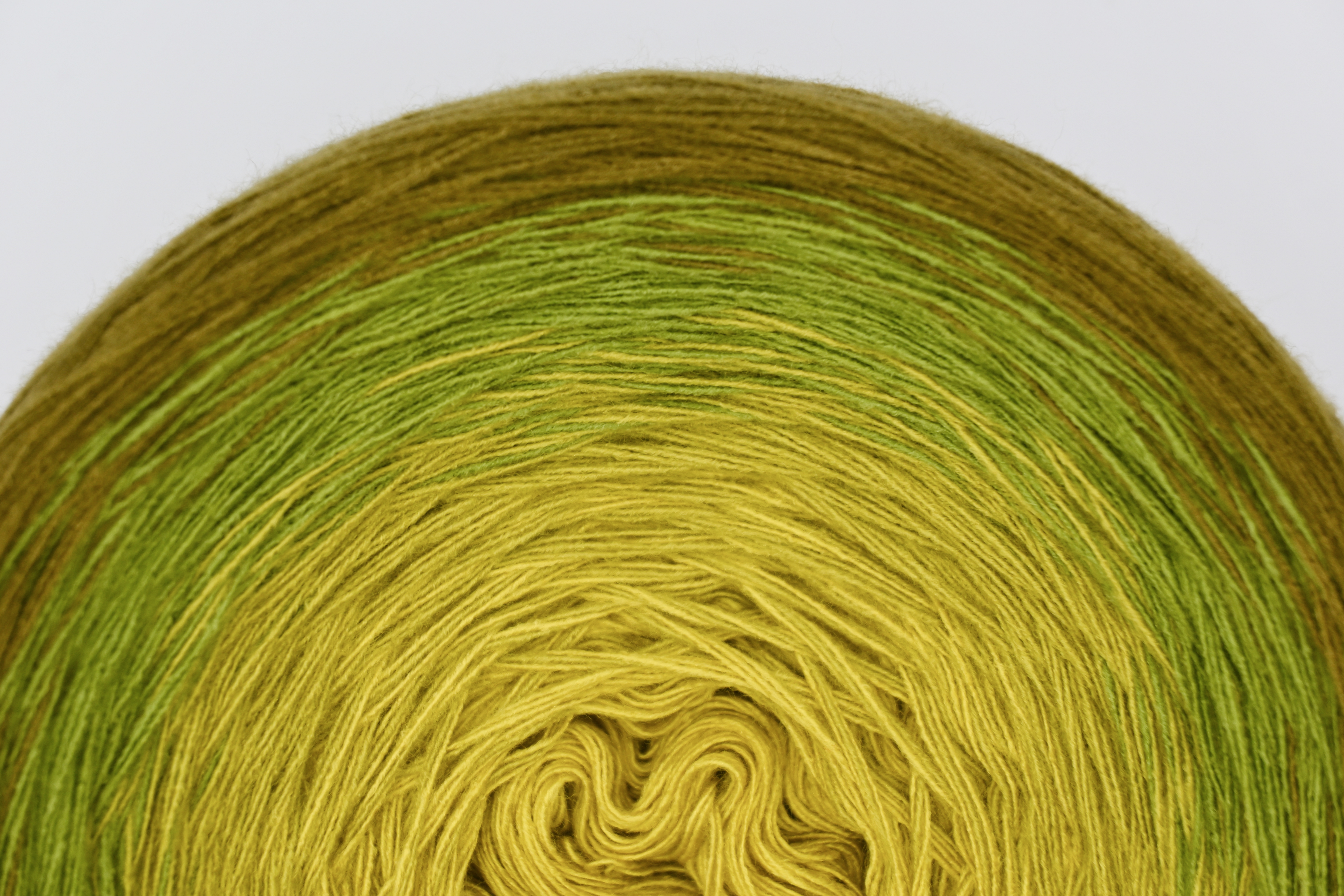 Es wechselt immer 1 Faden die Farbe. Bei diesem Farbübergang werden die Fäden miteinander verknotet. Die Knoten sind so klein, dass du sie problemlos mit einhäkeln/einstricken kannst.