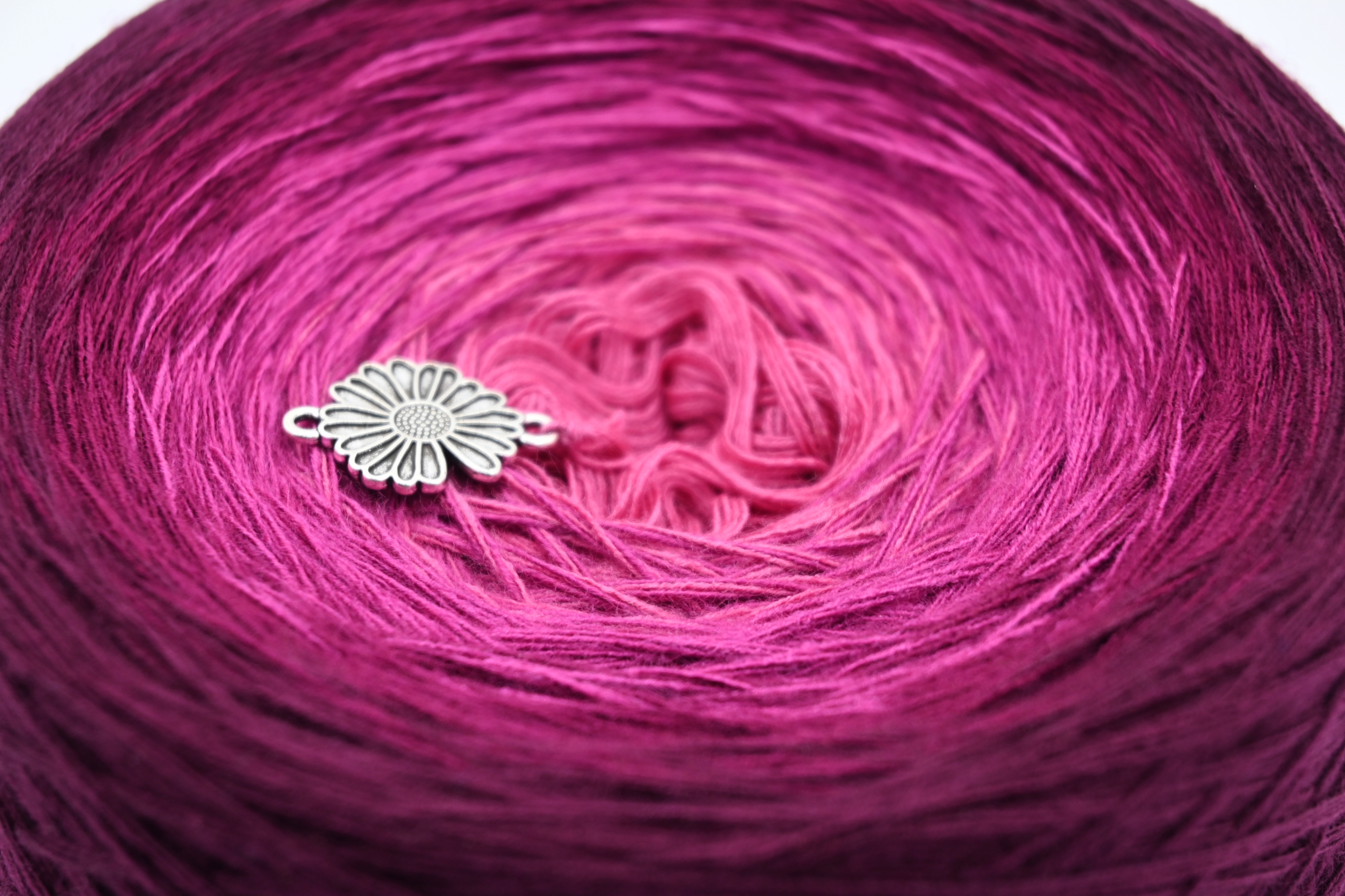 Es wechselt immer 1 Faden die Farbe. Bei diesem Farbübergang werden die Fäden miteinander verknotet. Die Knoten sind so klein, dass du sie problemlos mit einhäkeln/einstricken kannst.