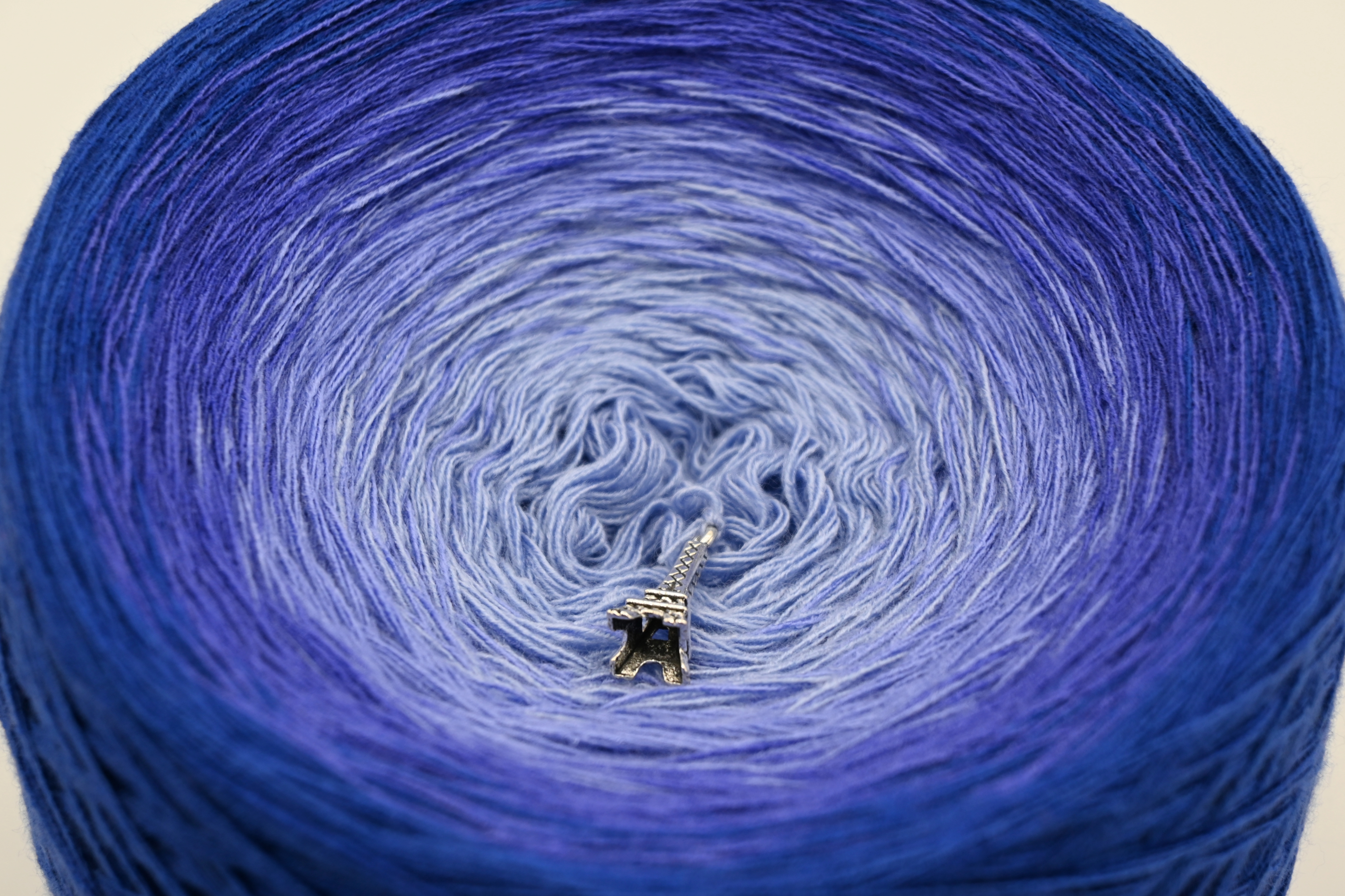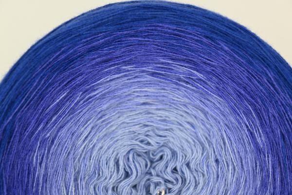 Es wechselt immer 1 Faden die Farbe. Bei diesem Farbübergang werden die Fäden miteinander verknotet. Die Knoten sind so klein, dass du sie problemlos mit einhäkeln/einstricken kannst.