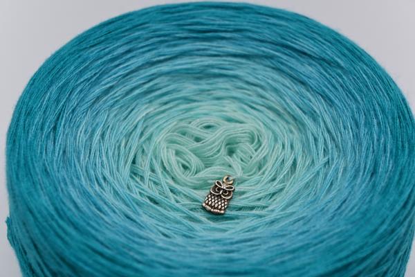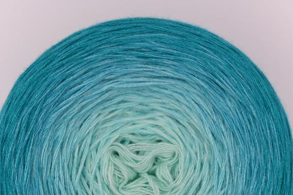 Es wechselt immer 1 Faden die Farbe. Bei diesem Farbübergang werden die Fäden miteinander verknotet. Die Knoten sind so klein, dass du sie problemlos mit einhäkeln/einstricken kannst.