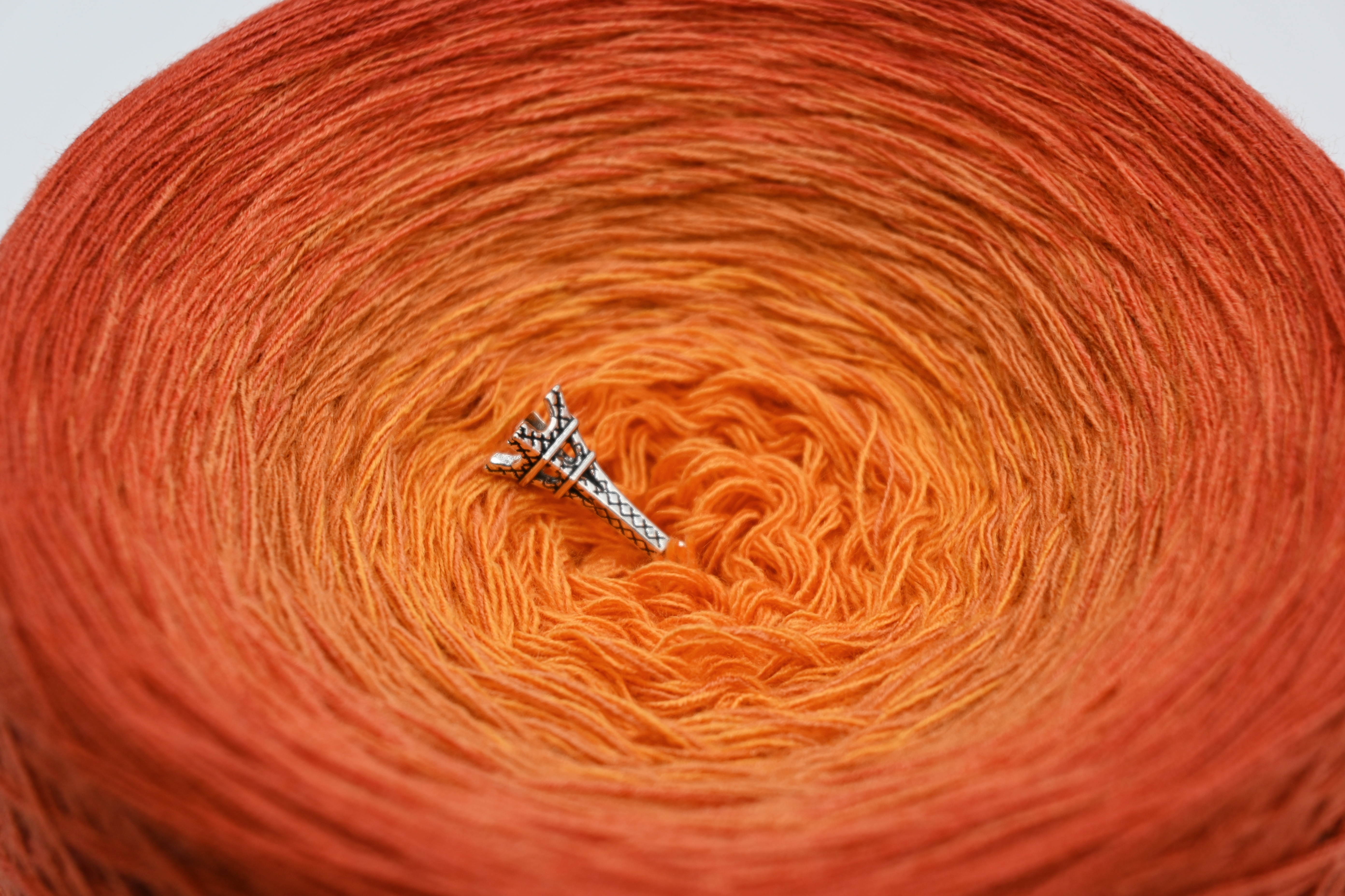 Es wechselt immer 1 Faden die Farbe. Bei diesem Farbübergang werden die Fäden miteinander verknotet. Die Knoten sind so klein, dass du sie problemlos mit einhäkeln/einstricken kannst.