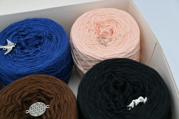 Es wechselt immer 1 Faden die Farbe. Bei diesem Farbübergang werden die Fäden miteinander verknotet. Die Knoten sind so klein, dass du sie problemlos mit einhäkeln/einstricken kannst.